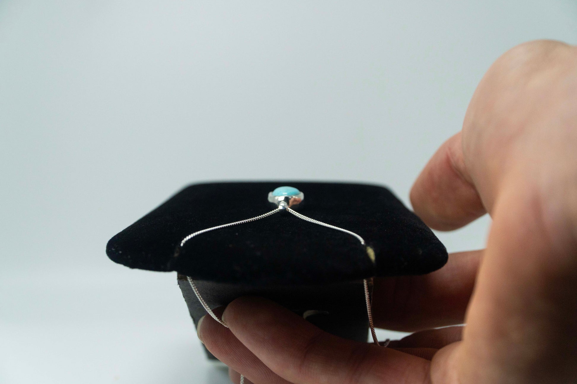 This striking pendant is expertly crafted in sterling silver and set with rare #9 turquoise, a high-quality stone mined in Nevada. Handcrafted by the skilled artisans at Borek Jewelers in Leadville, Colorado, this one-of-a-kind piece showcases exceptional craftsmanship and the natural beauty of the turquoise. Truly a remarkable and unique creation.