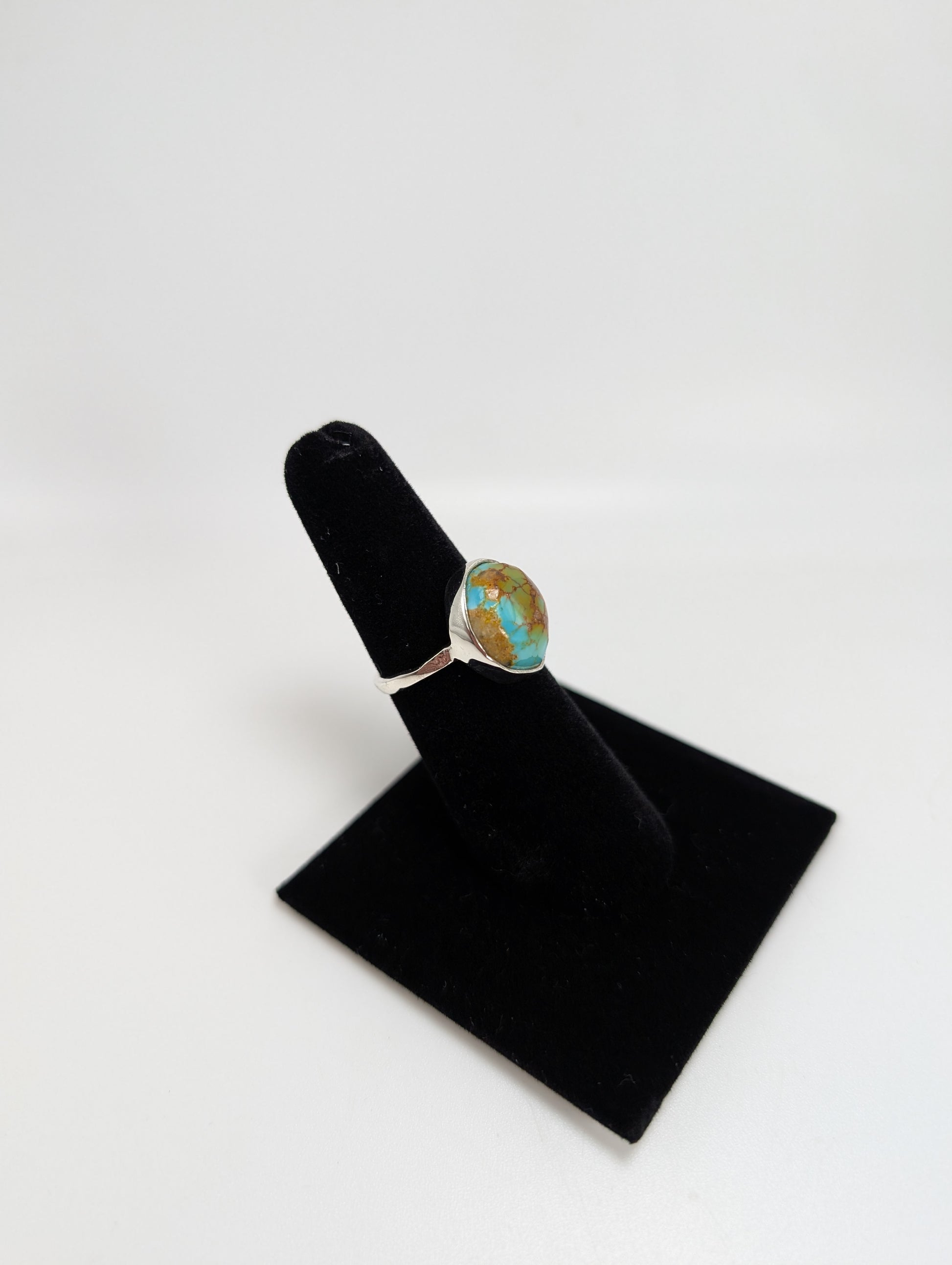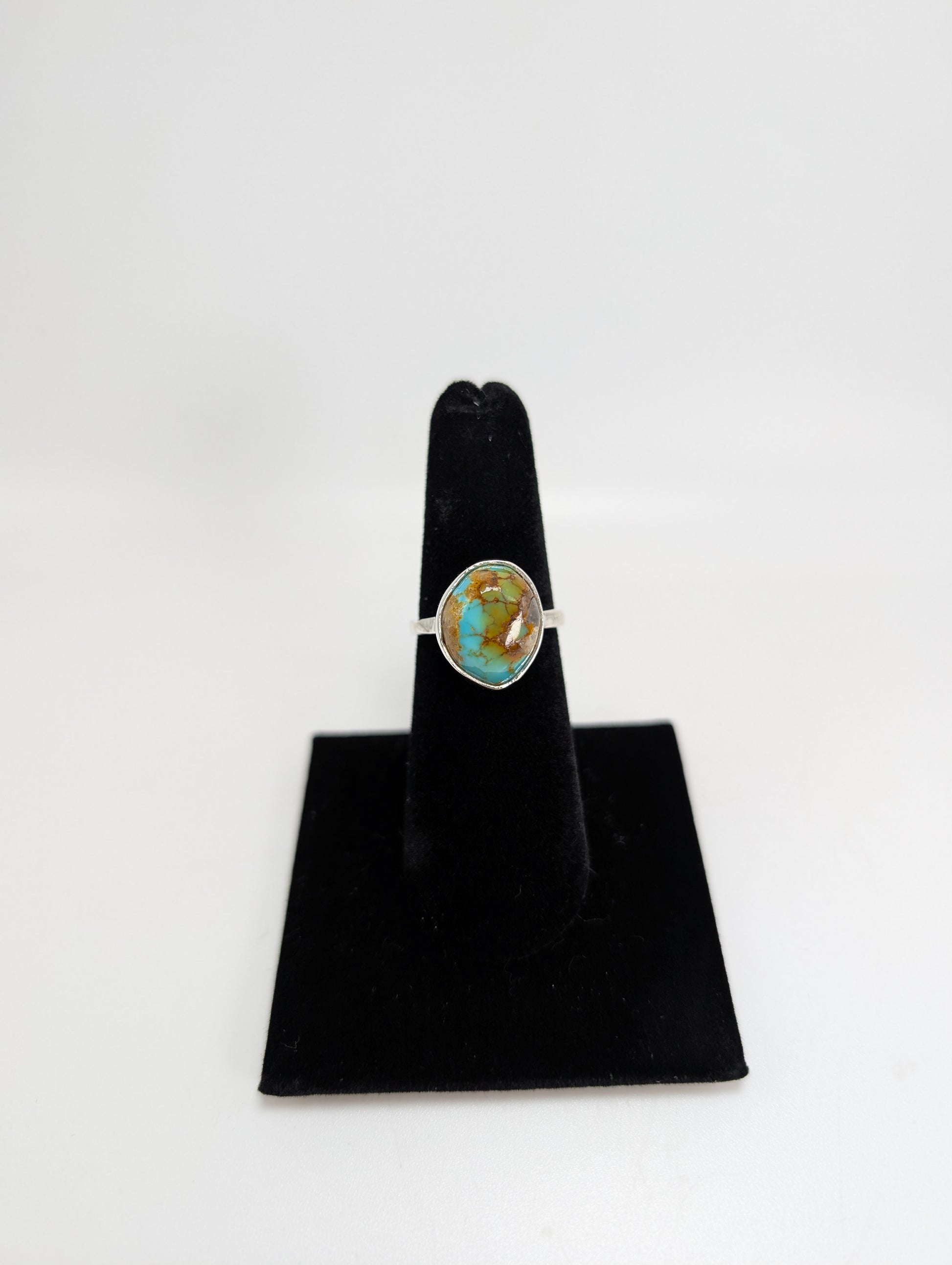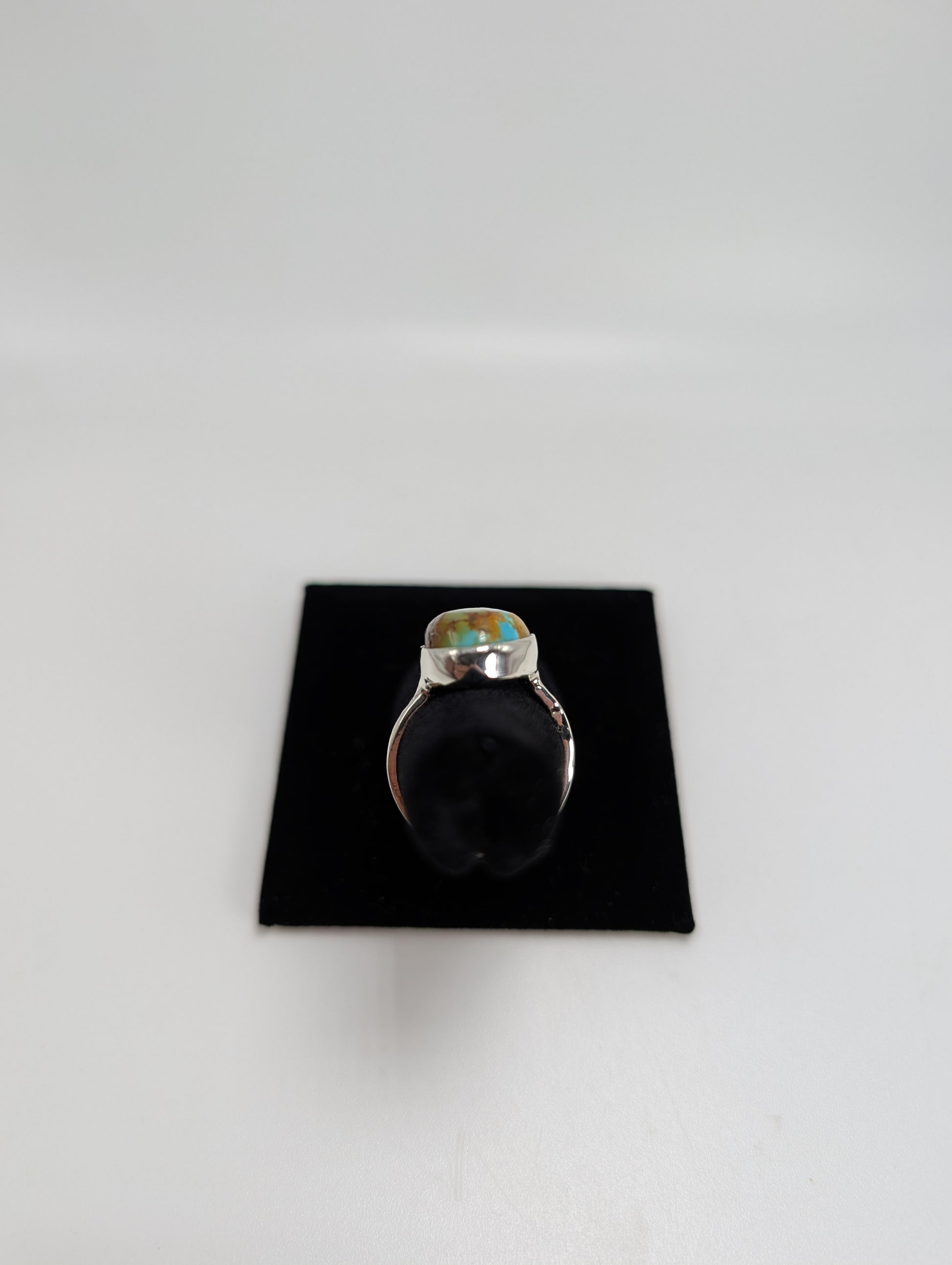 This striking ring is expertly crafted in sterling silver and set with rare #9 turquoise, a high-quality stone mined in Nevada. Handcrafted by the skilled artisans at Borek Jewelers in Leadville, Colorado, this one-of-a-kind piece showcases exceptional craftsmanship and the natural beauty of the turquoise. Truly a remarkable and unique creation.