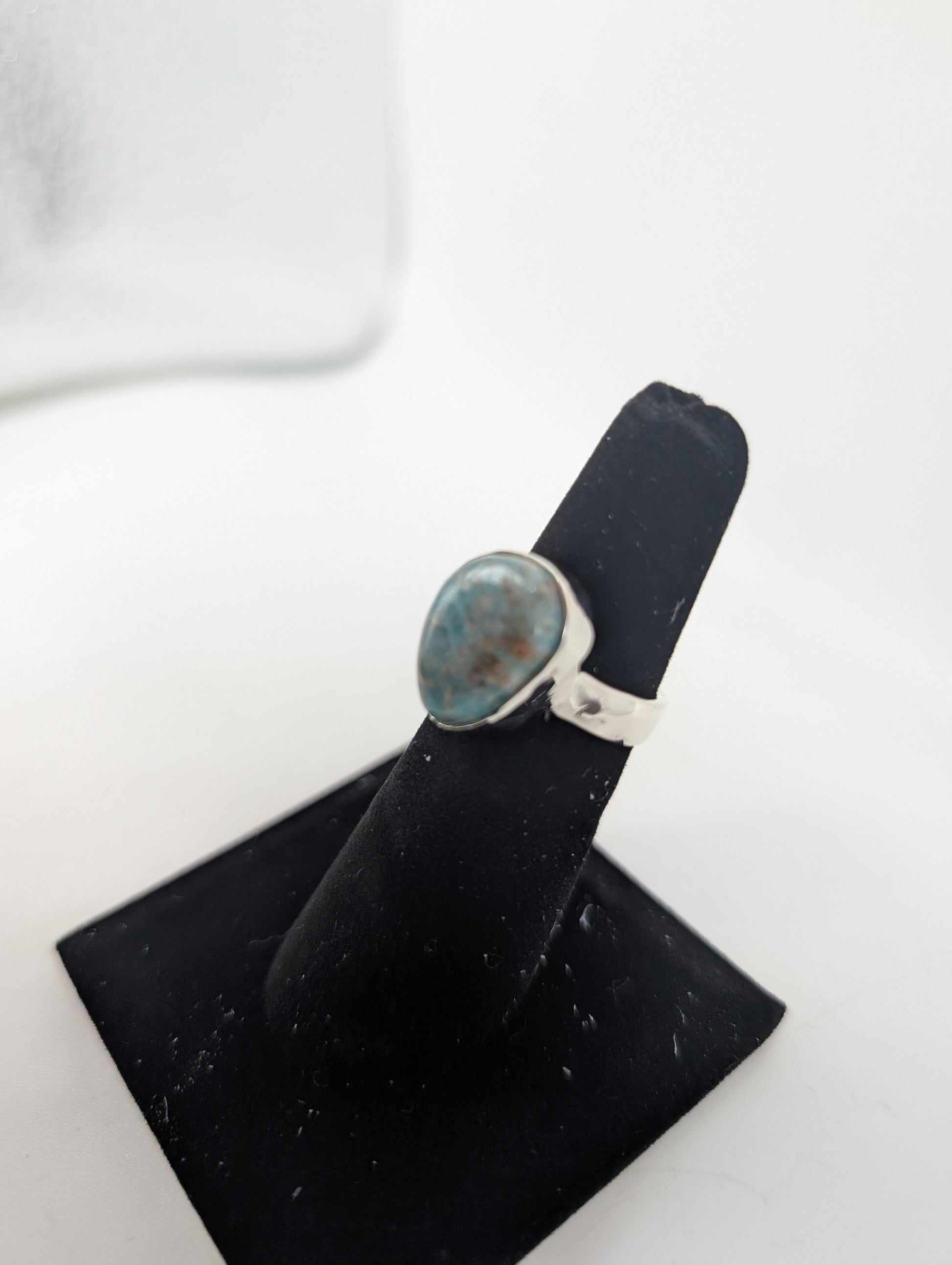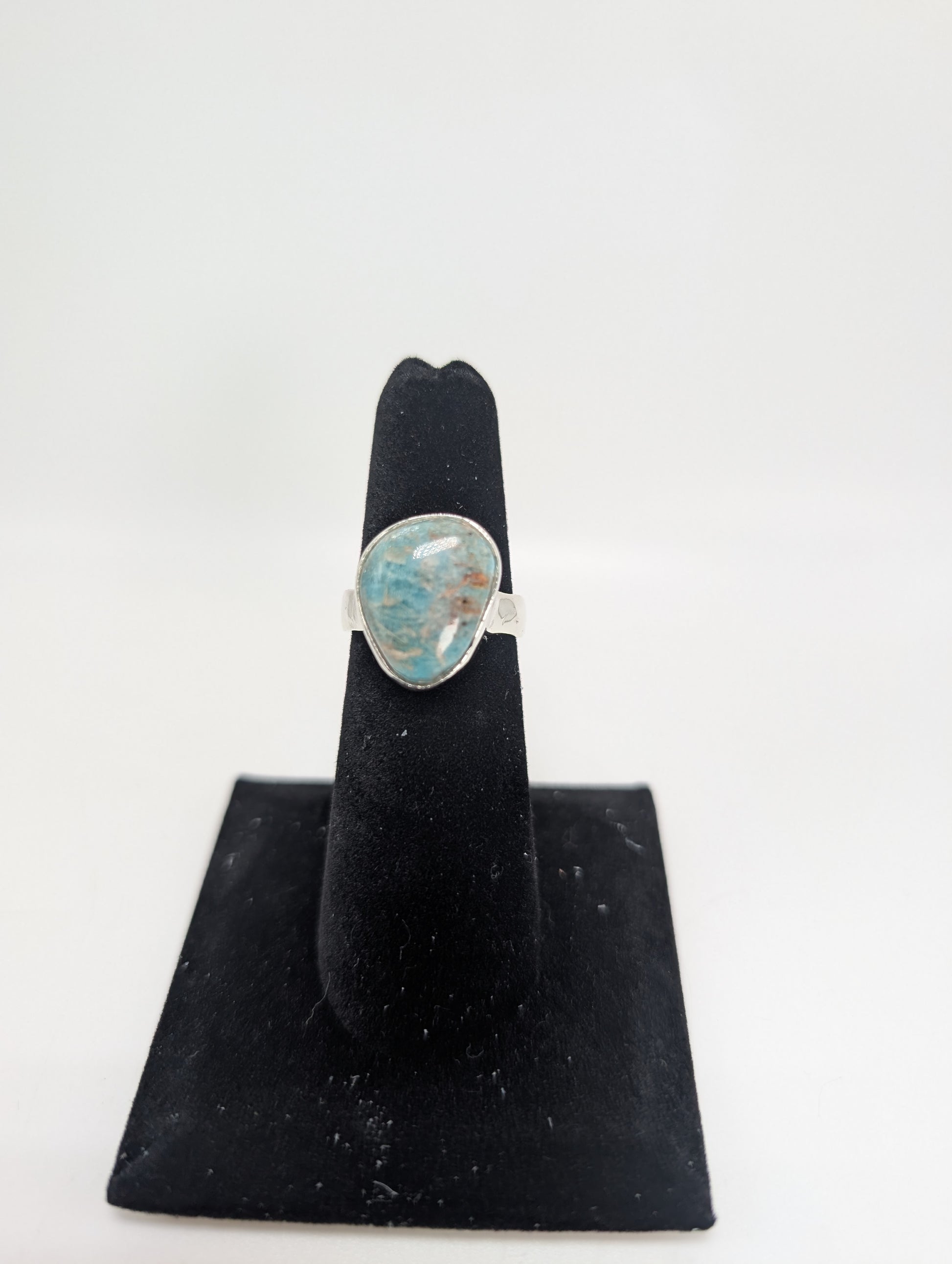 This exquisite ring features a breathtaking Colorado Amazonite, expertly set in a custom .925 sterling silver setting. Sourced from Lake George in Colorado, this gemstone is renowned for its vibrant blue color and exceptional clarity. Perfect for any special occasion—whether it's an anniversary, birthday, or wedding—this handcrafted piece is a timeless gift. Meticulously crafted in our Leadville, Colorado studio, this unique piece of fine jewelry showcases impeccable craftsmanship and is ideal for those who appreciate the beauty of custom silver rings and high-quality Colorado gemstones.