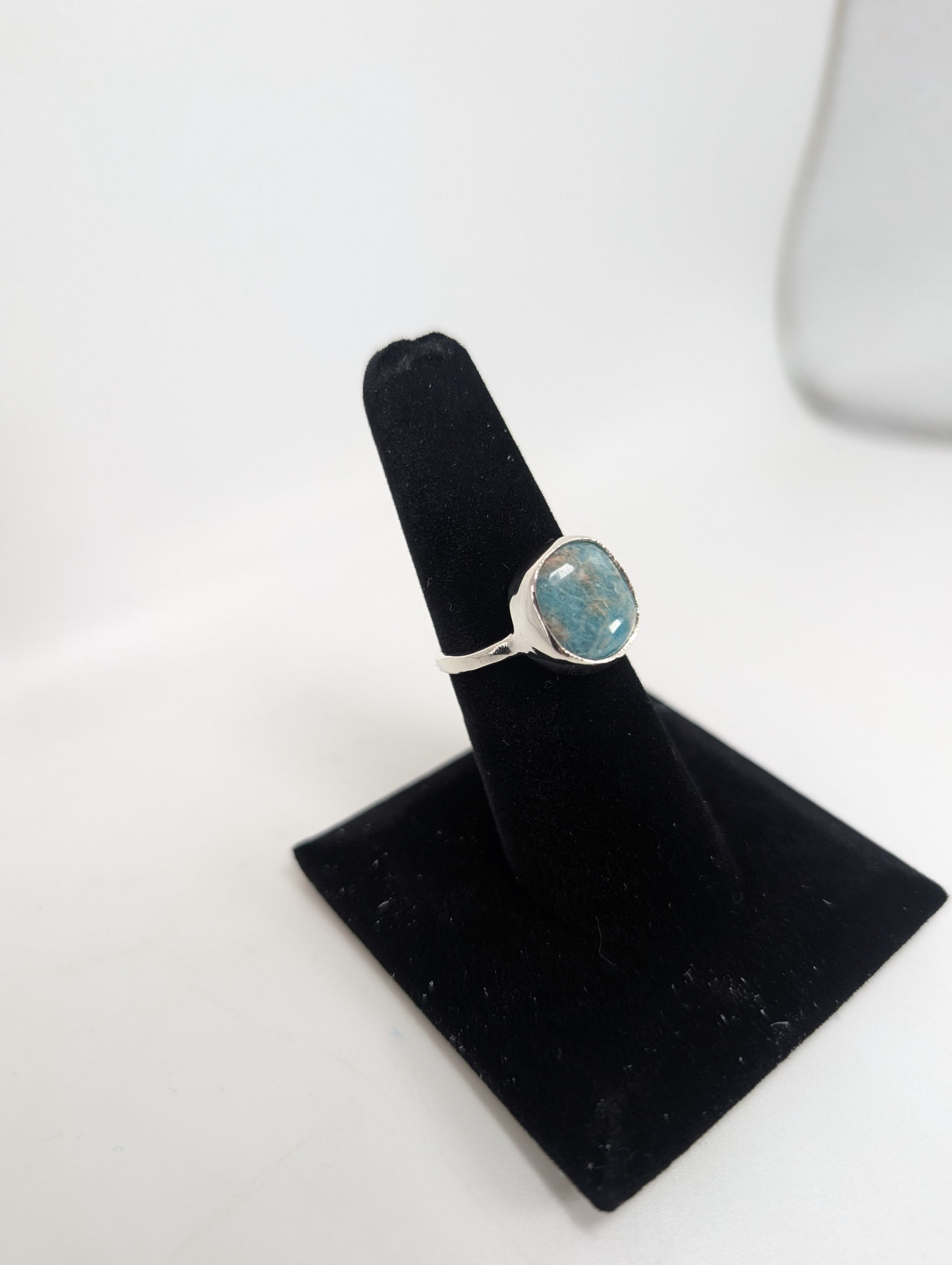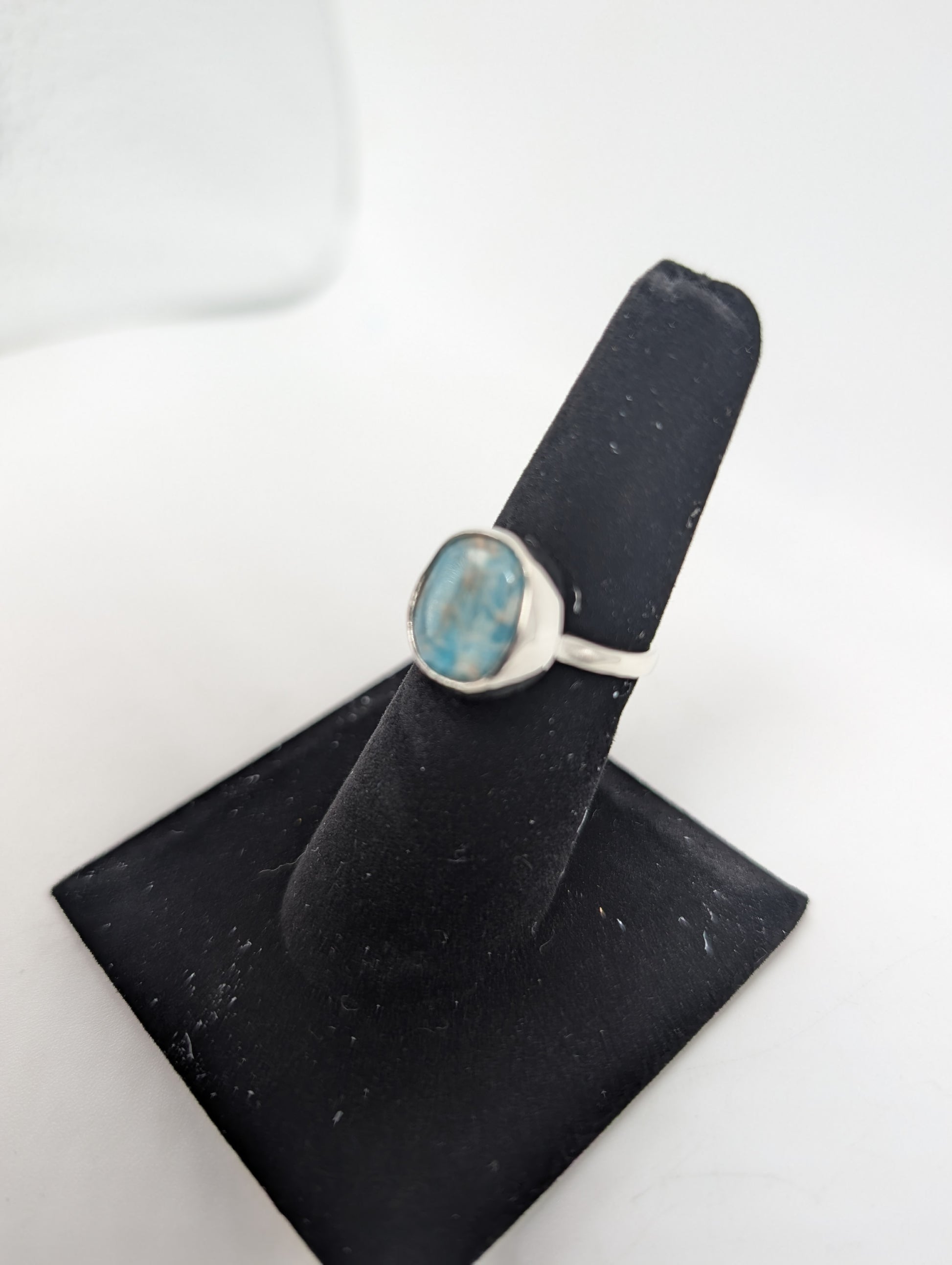 This exquisite ring features a breathtaking Colorado Amazonite, expertly set in a custom .925 sterling silver setting. Sourced from Lake George in Colorado, this gemstone is renowned for its vibrant blue color and exceptional clarity. Perfect for any special occasion—whether it's an anniversary, birthday, or wedding—this handcrafted piece is a timeless gift. Meticulously crafted in our Leadville, Colorado studio, this unique piece of fine jewelry showcases impeccable craftsmanship and is ideal for those who appreciate the beauty of custom silver rings and high-quality Colorado gemstones.