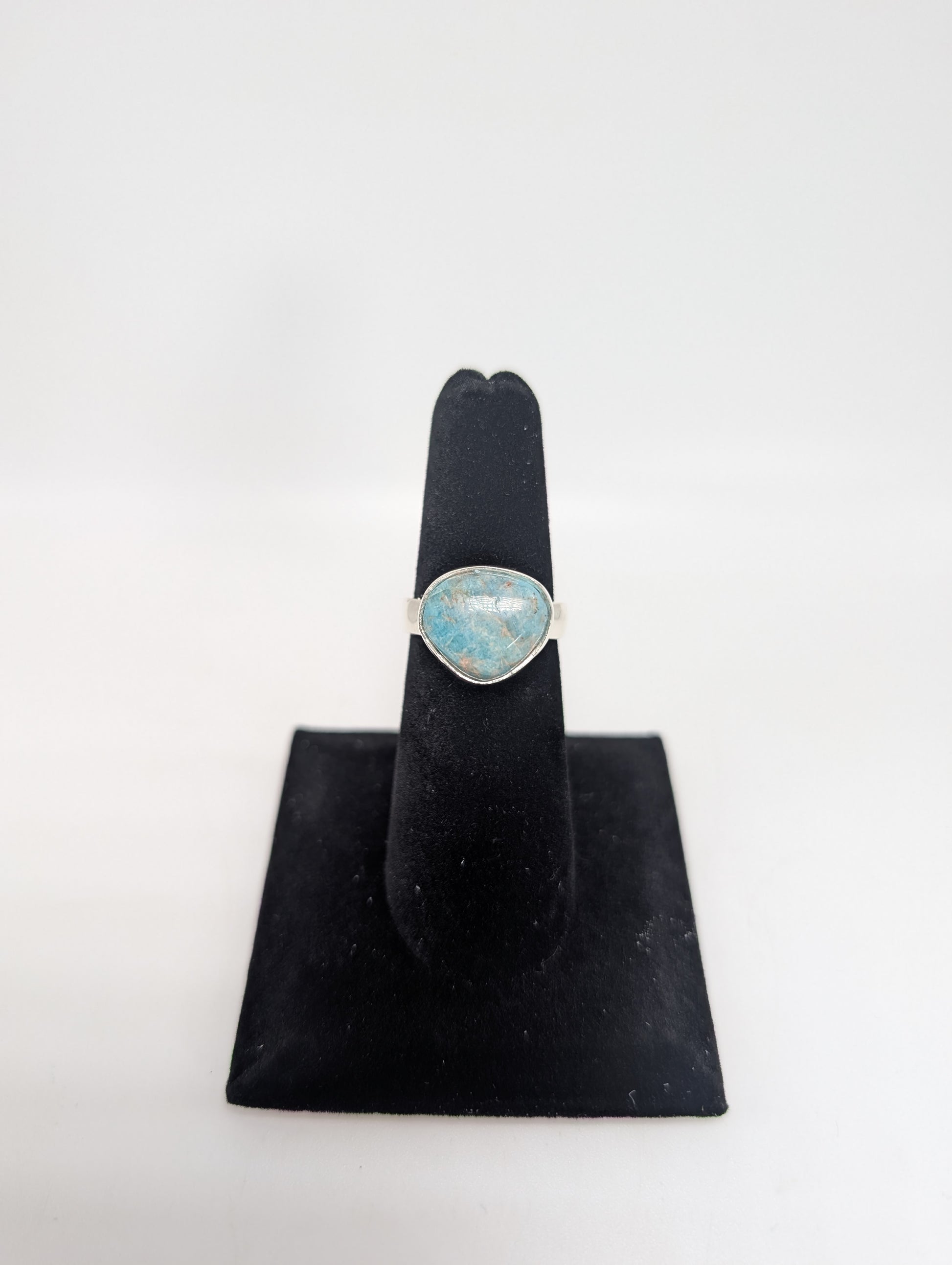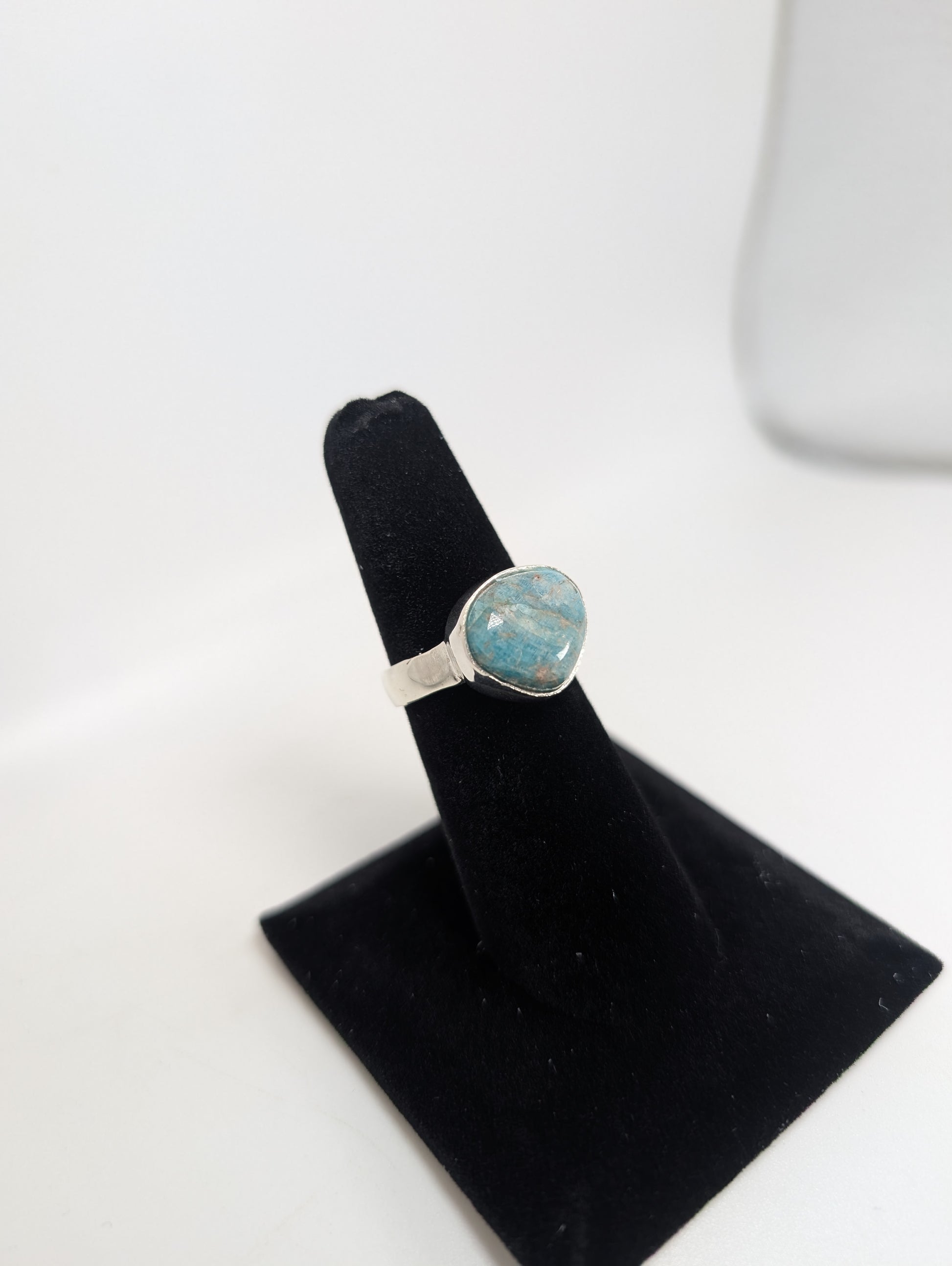 This exquisite ring features a breathtaking Colorado Amazonite, expertly set in a custom .925 sterling silver setting. Sourced from Lake George in Colorado, this gemstone is renowned for its vibrant blue color and exceptional clarity. Perfect for any special occasion—whether it's an anniversary, birthday, or wedding—this handcrafted piece is a timeless gift. Meticulously crafted in our Leadville, Colorado studio, this unique piece of fine jewelry showcases impeccable craftsmanship and is ideal for those who appreciate the beauty of custom silver rings and high-quality Colorado gemstones.