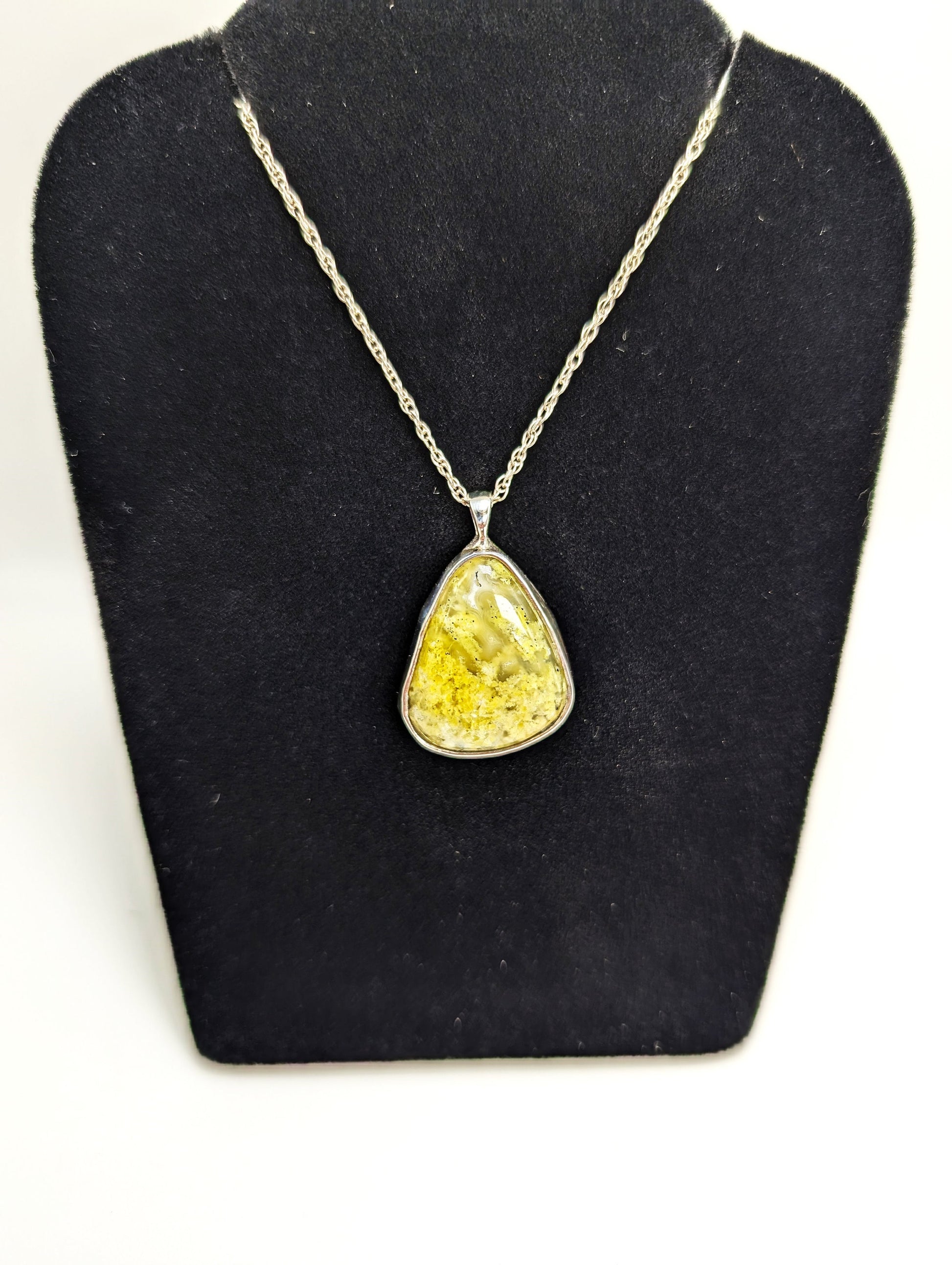 This exquisite Yellow Moss Agate from Saguache County, Colorado, is set in a custom .925 sterling silver pendant. With its vibrant yellow hues, this remarkable piece beautifully represents the Colorado landscape. Hand-cut and expertly crafted in our Leadville, Colorado studio, this unique silver pendant is a stunning addition to any fine jewelry collection.