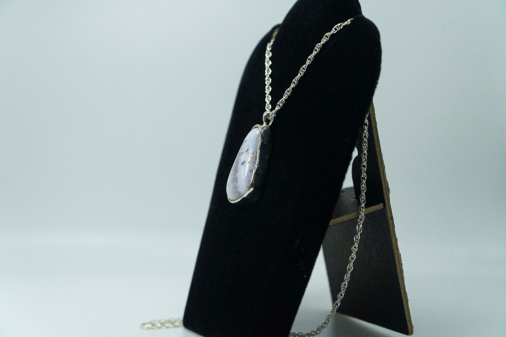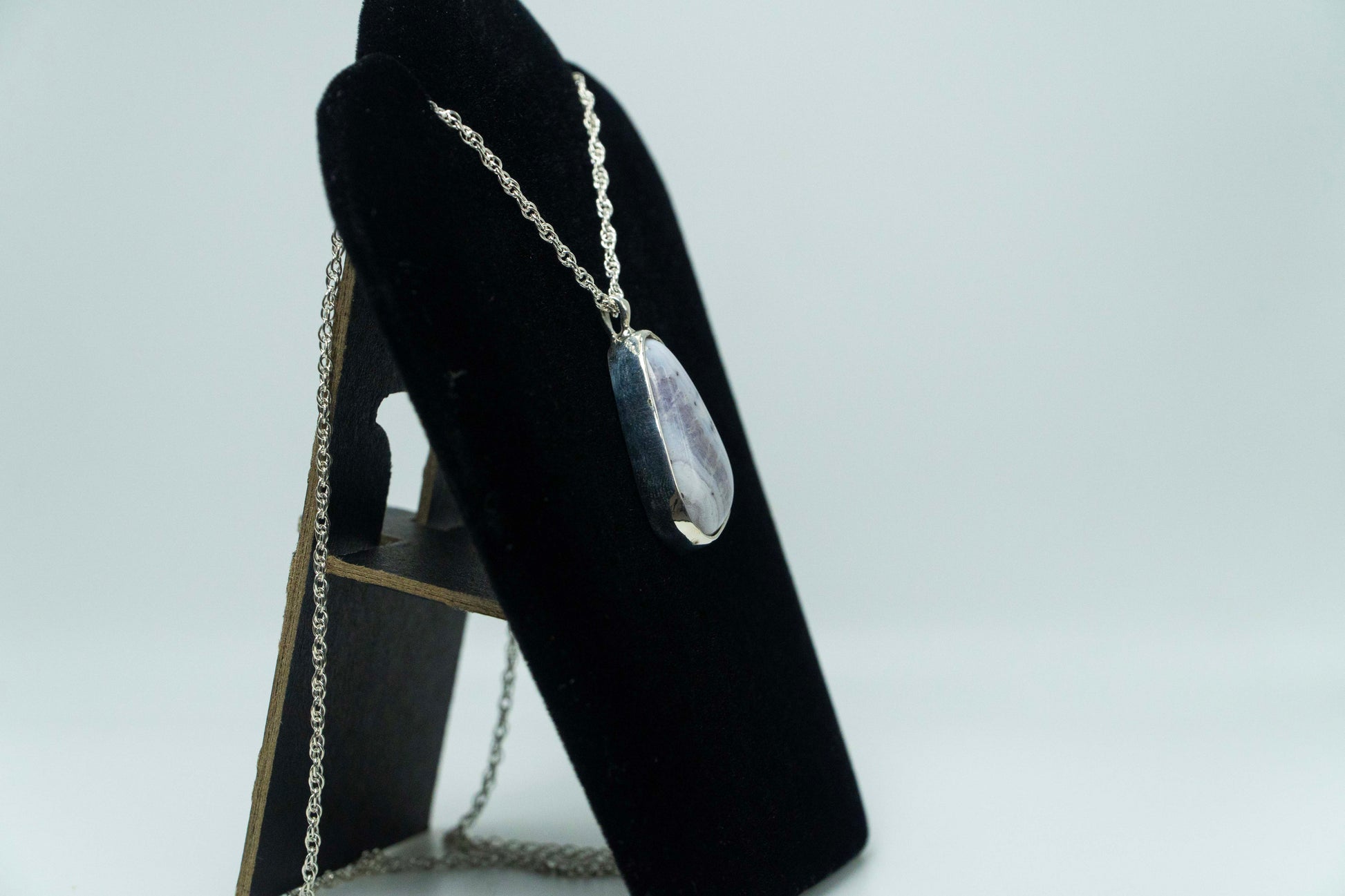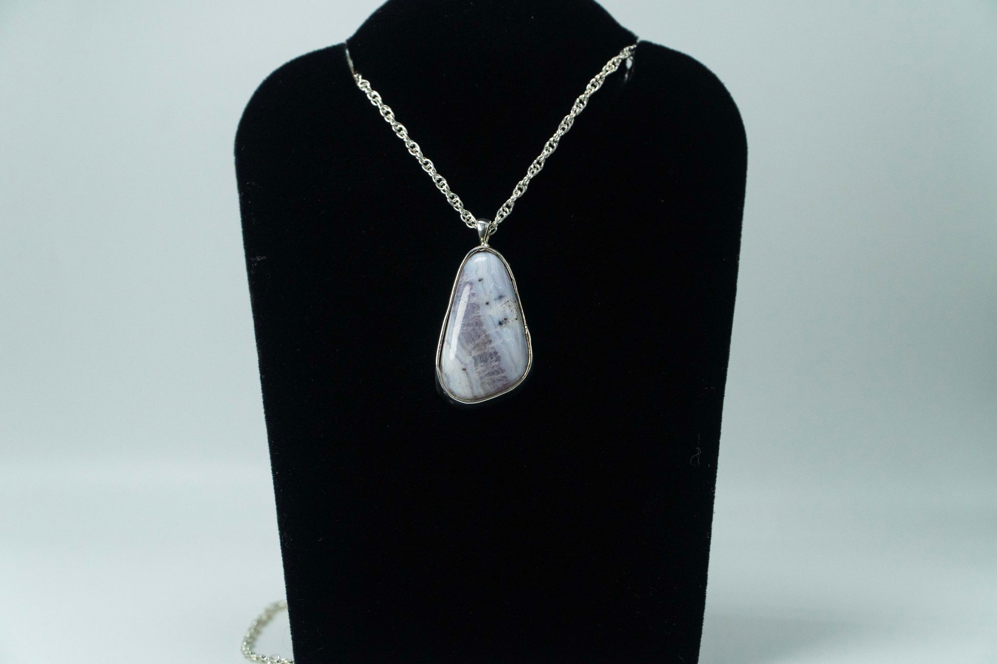 This exquisite silver pendant showcases a rare Sowbelly Agate from Creede, Colorado, featuring distinctive Amethyst banding that adds to its allure and desirability. Handcrafted with precision by Borek Jewelers in Leadville, Colorado, this pendant is a stunning addition to any jewelry collection.