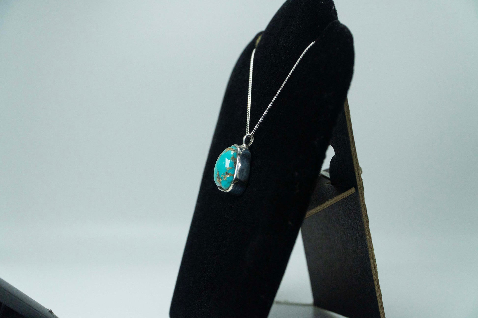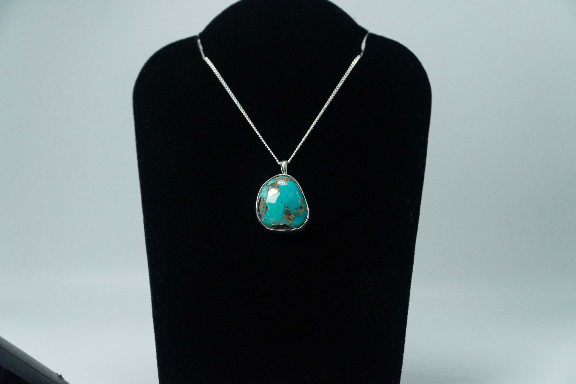 This exquisite silver pendant features turquoise sourced from the renowned mines of Sonora, Mexico. Known as 'Sonora Gold,' this rare and vibrant turquoise is prized for its striking color and unique character. Meticulously handcrafted by Borek Jewelers in Leadville, Colorado, this pendant is a one-of-a-kind piece, showcasing exceptional craftsmanship and timeless beauty.