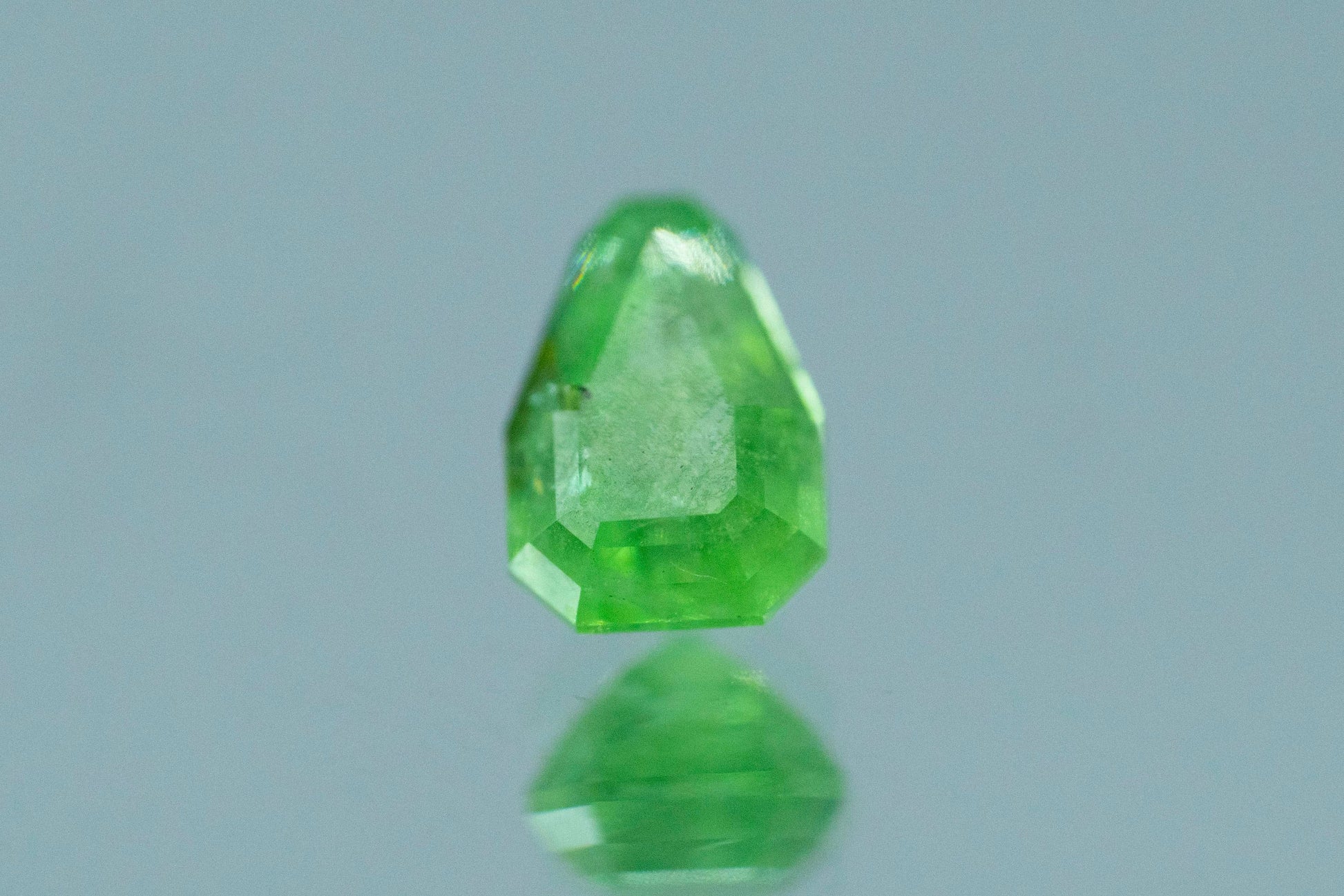 This is a rare green Tsavorite Garnet. This Garnet was mined from the Lelatema hills of Tanzania. The stone is only found in a small number of localities, making it very rare. This gemstone was faceted by Borek Gemstones and Jewelry. All products are guaranteed with a 30-day return policy.